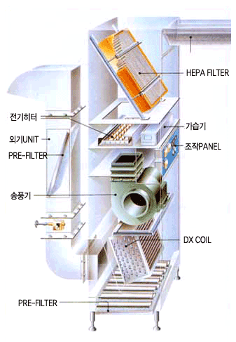 A.C.U 장비안에 Hepa Filter를 내장한 Unit로서 층고가 낮은 신축